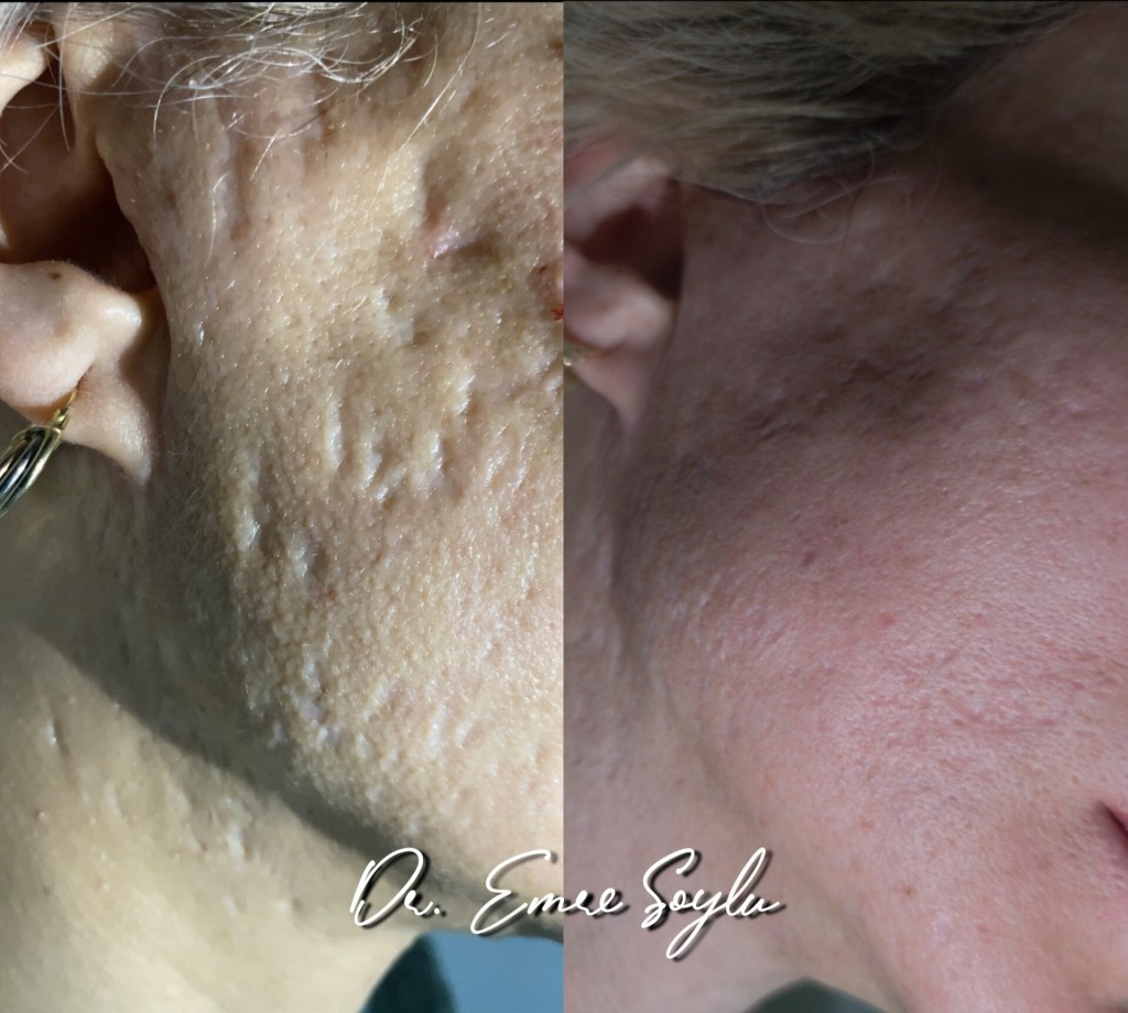 Hyaluronic acid injection procedure was applied to more than 100.000 atrophic scars with Dr. Emre Soylu’s scar fillers technique.